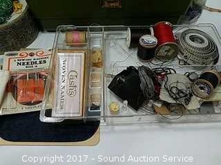 Lot #0113: Small Sewing Box with Sewing Supplies