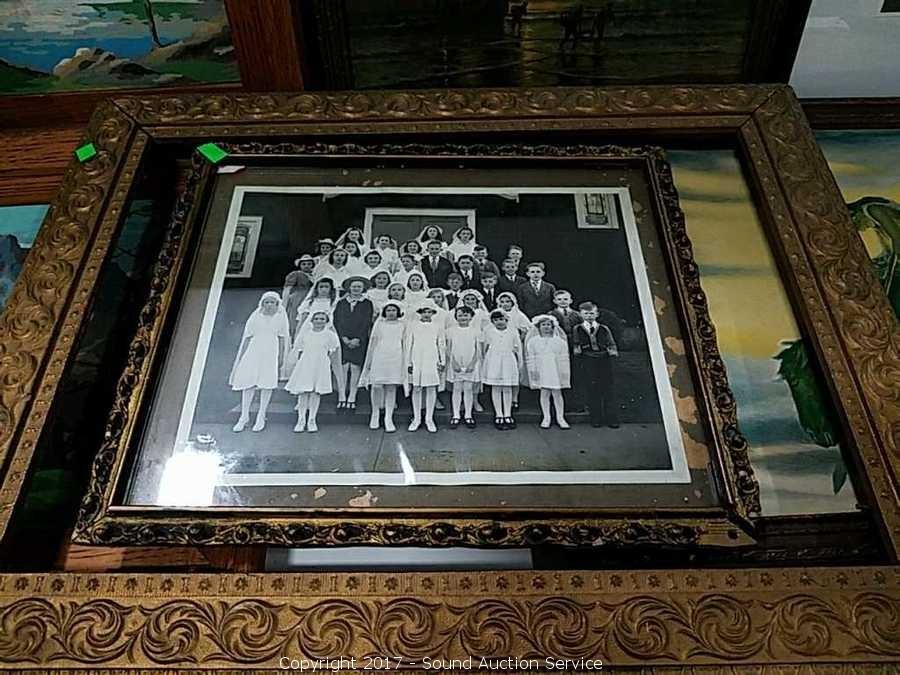 Over 300 Lots - Shop Tools, Craftsman Compound Miter Saw, Workmates, Sanders, Bench Vice, Wood Burner, Knives, Magnet Trays, Craftsman Table Saw, Antique Photo's, Newspapers, 1875 Vulgate Bible, 40" LED TV, Vintage Bedroom Sets, Waterfall Furniture, Gorgeous Buffet, Matching Dining Table, Stone Chess Set, Auto Tuner, Kenwood Receiver, JBL Speakers, Sterling Silverware and Salt & Pepper, Vintage German Walnut Mantle Clocks, Vintage Household Items, ERTL Diecast Banks, Disney Records, Marx Train Set, Spotting Scope & So Much More!!!