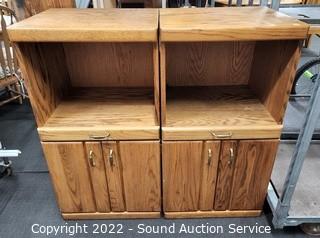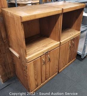 Lot #0020: 2 Oak Finish Side Table Cabinets