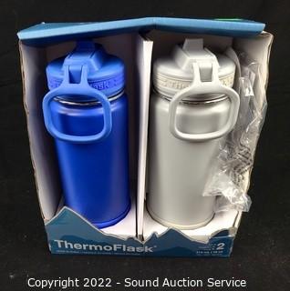 Lot #0288: 2 ThermoFlask 16oz Blue/Gray Tumblers