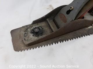 Lot Details: Curved saw comes with sheathe, 22" blade, Sandvik Sweden 26" saw, 21" metal are plane saw piece.