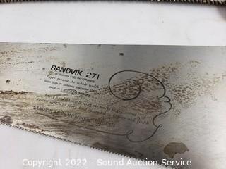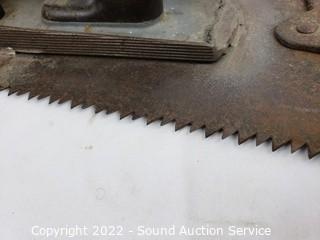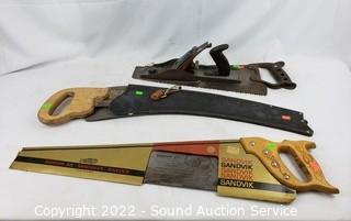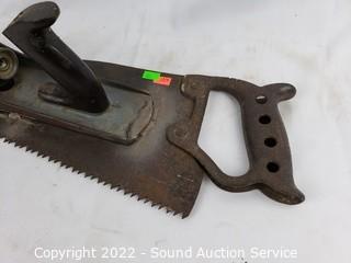 Lot #0103: 2 Vtg. Crosscut Saws & Metal Saw/Plane Piece