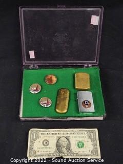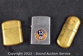 Lot #0091: 3 Vtg. Wick Lighters, 3 Pins