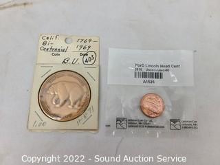 Lot Details: 1983 Carter inflation Coins, 2010 BU Lincoln Head Cent, 1969 Bicentennial BU California Coin, 1980 Susan B. Anthony $1 Coin.