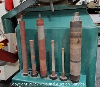 Lot Details: With cart for easier movement. Comes with 1/4" to 4" spindles. 39" H x 25" x 25"