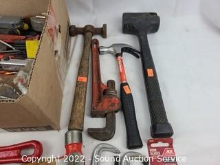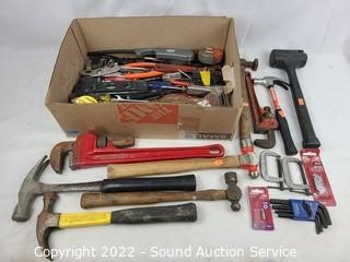 Lot Details: Wrenches, hammers, pliers, hex-key set, & more. Refer to photos for lot contents.