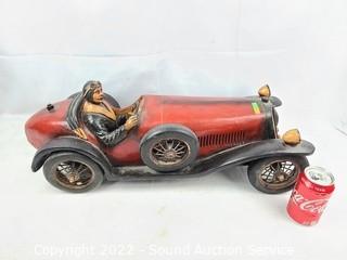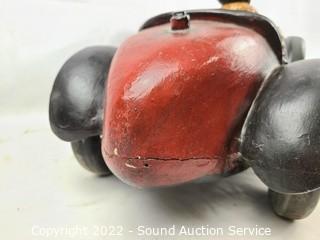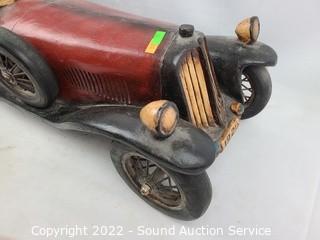 Lot Details: 10" H x 27" L x 9.5". Unsure what it's made from, seems like wood?, rubber tires.