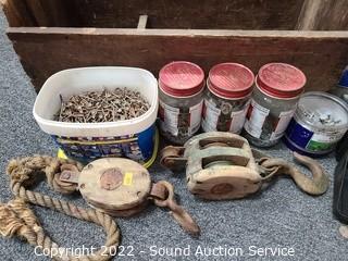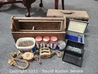 Lot #0135: Rustic Toolboxes, Hardware, Pulley