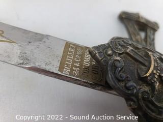 Lot Details: Monogrammed George R. Dickie. 36" long. Some wear from age & use. By McLilley & Co, Columbus Ohio. Some knicks & dings on blade.