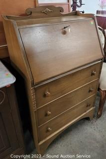 Lot #0027: Antique Maple Drop Front Secretary Desk