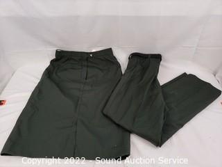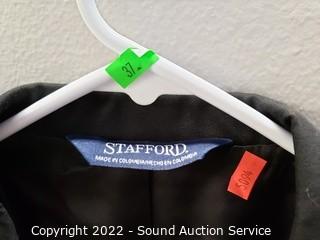 Lot Details: Military dress uniform, has various pins, medal & bars, jacket S:8WR, slacks S:10WT. Blazer is Stafford S:42R.