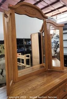 Lot #0046: Solid Oak 8-Drawer Vanity Dresser
