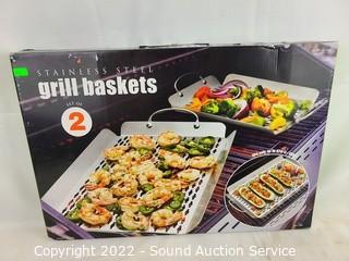 Lot #0306: 2 Stainless Grilling Baskets & The Rock Griddle
