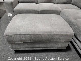 Lot Details: Appears to be unused, possibly floor model. One leg is broken stripped, will not screw in just sitting in hole, no other issues. 31" H x 91" x 117" L x 36" D x 18" to seat, with matching storage ottoman 25" x 37" x 18"H.