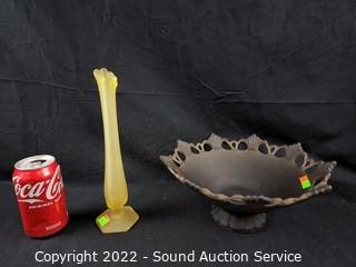 Lot Details: hand made, both with original Westmorland stickers. 5" H x 10.5" Dia bowl & 10" tall bud vase.