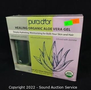 Lot #0321: 3 Pura d'or Healing Organic Aloe Vera Gel