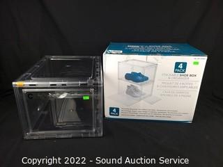 Lot #0305: 4 Clear Acrylic Stackable Shoe Box Organizers