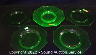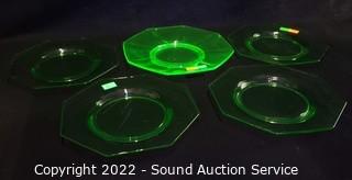 Lot #0182: 5 Vintage Uranium Glassware Plates