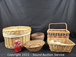 Lot #0198: 5 Woven Baskets - 1 w/Sand Dollar Shells