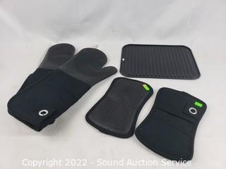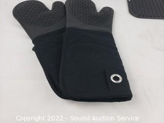 Lot Details: 2 oven mitts, 2 grabbers, 1 trivet. No issues.