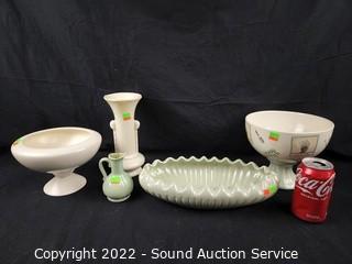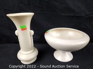 Lot #0201: 5pc Vtg. Pottery Vases, Compote & Bowl