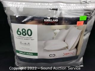 Lot #0157: 7pc Kirkland 680TC Split King Cotton Sheet Set
