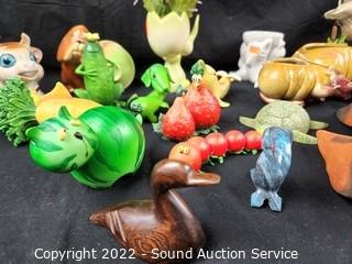 Lot Details: Refer to photos for lot contents. Pottery, ceramic, wood, composite construction.