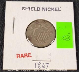 Lot #0063: Rare Antique 1867 Shield Nickel