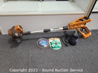 Lot Details: Comes with 1 battery, 1 charger, 2 spools of trimmer line. Various wear from use. Has power, works.