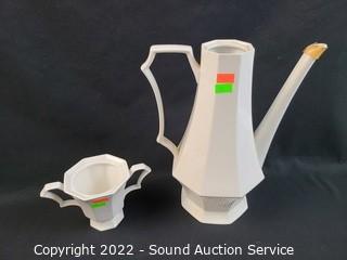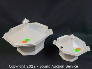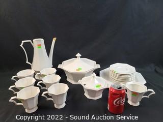 Lot Details: Made in Japan. Teapot and sugar dish are missing lids. Don't see any other issues. Teapot, 2 sugar dish, 6 cups, 8 saucers, tureen and drip plate.