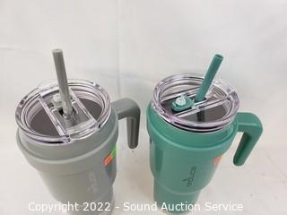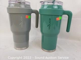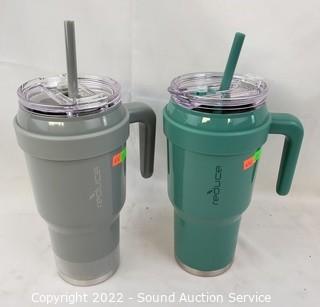 Lot #0203: 2 Reduce 40oz Travel Mugs w/Straws