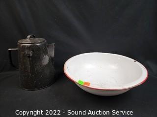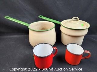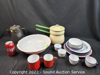 Lot #0178: 21pc Vintage Enamelware Cookware Dishes