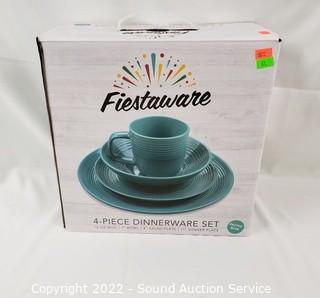 Lot #0067: 4pc Fiestaware Pacific Blue Dinnerware Set
