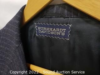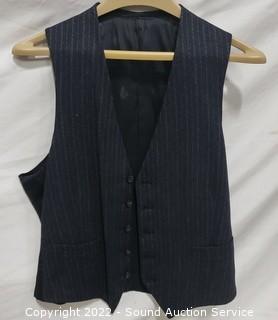 Lot Details: Vest, blazer & slacks. Don't see a size. 17" shoulders, 34" L x 26" outer arm, 19" inner arm on blazer. Slacks 33" W x 33" inseam on slacks. Could use dry cleaned, don't see any issues.