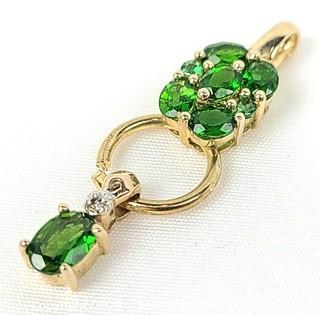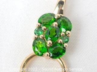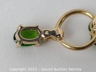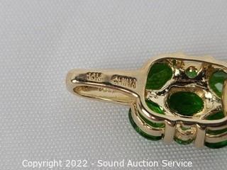 Lot Details: Set with 1 small diamond, green stones tested aventurine, demantoid, jadeite, or peridot.