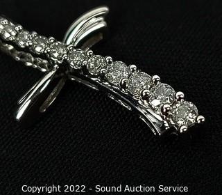 Lot #0280: 10k White Gold & Diamond Cross Pendant