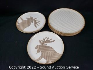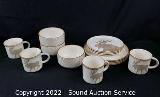 Lot #0230: 14pc Stoneware Moose Print Dish Set