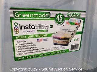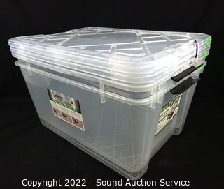 Lot #0263: 2 Greenmade 45qt Clear Plastic Totes w/3 Lids