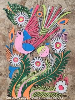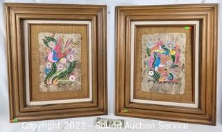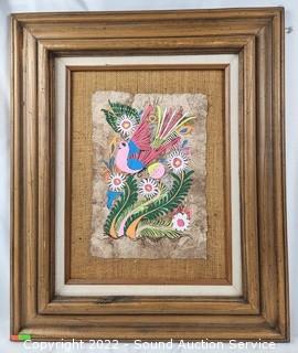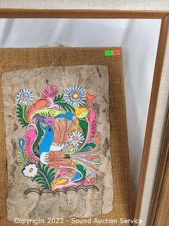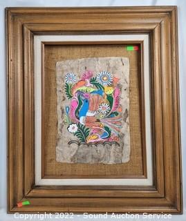 Lot Details: One has come free from frame. Painted on a homemade piece of fibrous paper. 20" x 24" overall, fits 12" x 16" artwork.