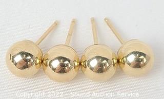 Lot #0278: 2 Pairs 14k Gold Sphere Stud Earrings