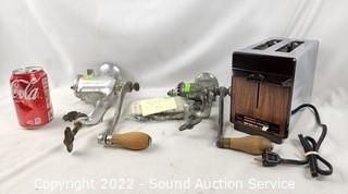 Lot #0061: 2 Vtg. Universal Food Choppers & Toaster