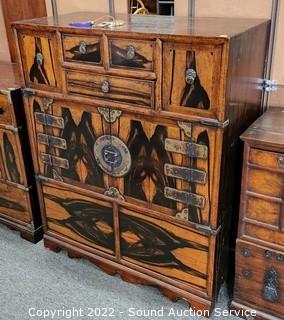 Lot #0025: Antique Asian Korean? Chest w/Brass Lock & Key