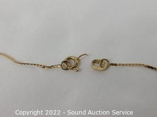 Lot Details: Link between clasp & tab is broken, looks like an easy fix. A few small kinks in chain. TW: 1.6g.