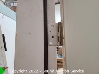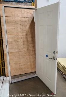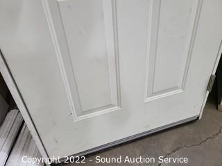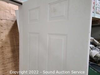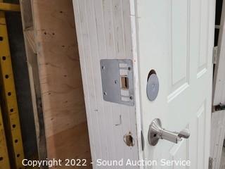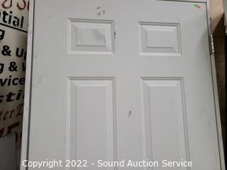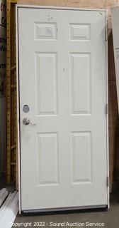 Lot Details: Fits a 3'2" x 6'10" opening. Comes with handle set, no deadbolt. Some minor dents, various dirty spots.