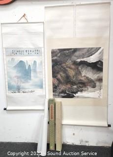 Lot #0064: 5pc Original Asian Scroll Artwork