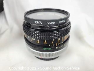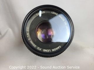 Lot Details: Canon Lens FD 50mm, 1:1.8 lens, camera bag. Untested.
