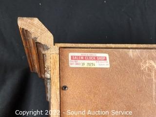 Lot Details: Comes with keys for door and clock. Instruction manual & original purchase receipt from Salem Clock Shop for $440. Appears to be functioning as intended, Westminster Chime. 34" H x 14" W x 6.5" D.