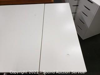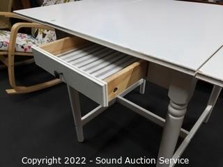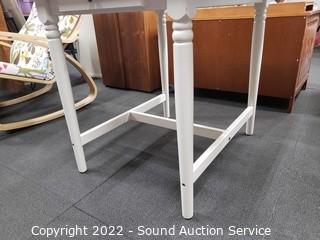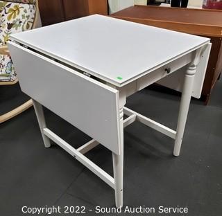 Lot Details: Some wear to the finish, scuffs, scratches. 29" H x 31" x 23" with (2) 11.5" leaves.
