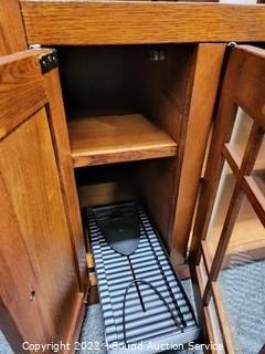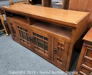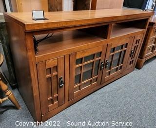 Lot Details: Built into top iPod docking station. Appears to be solid wood construction. 28" H x 52" W x 17" D. A few minor marks on top no major issues.