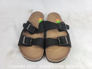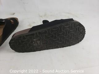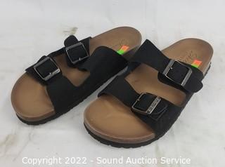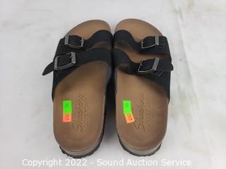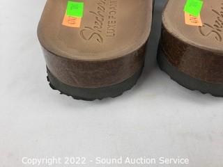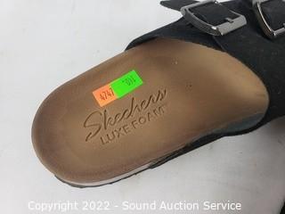 Lot #0140: Skechers Luxe Foam Black Leather Sandals S:6